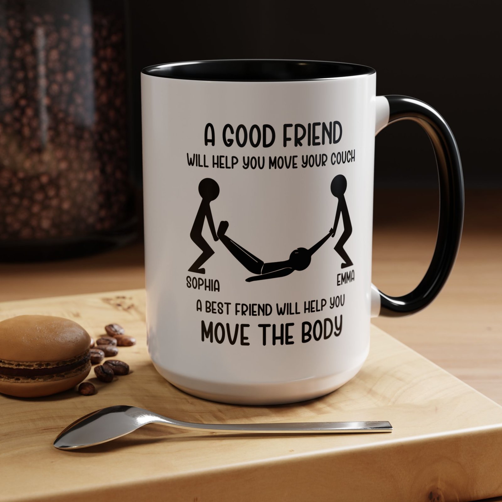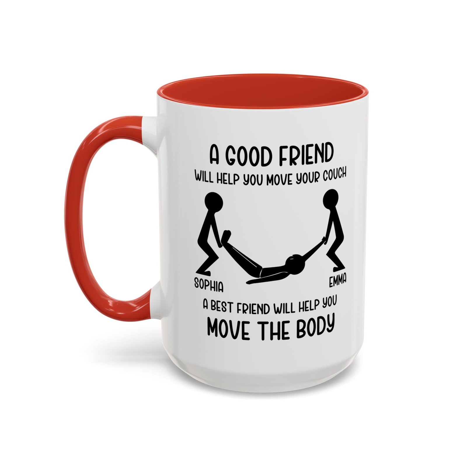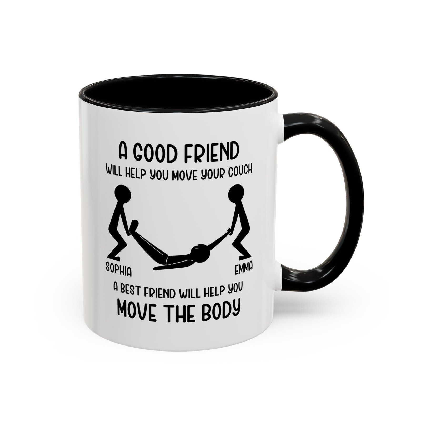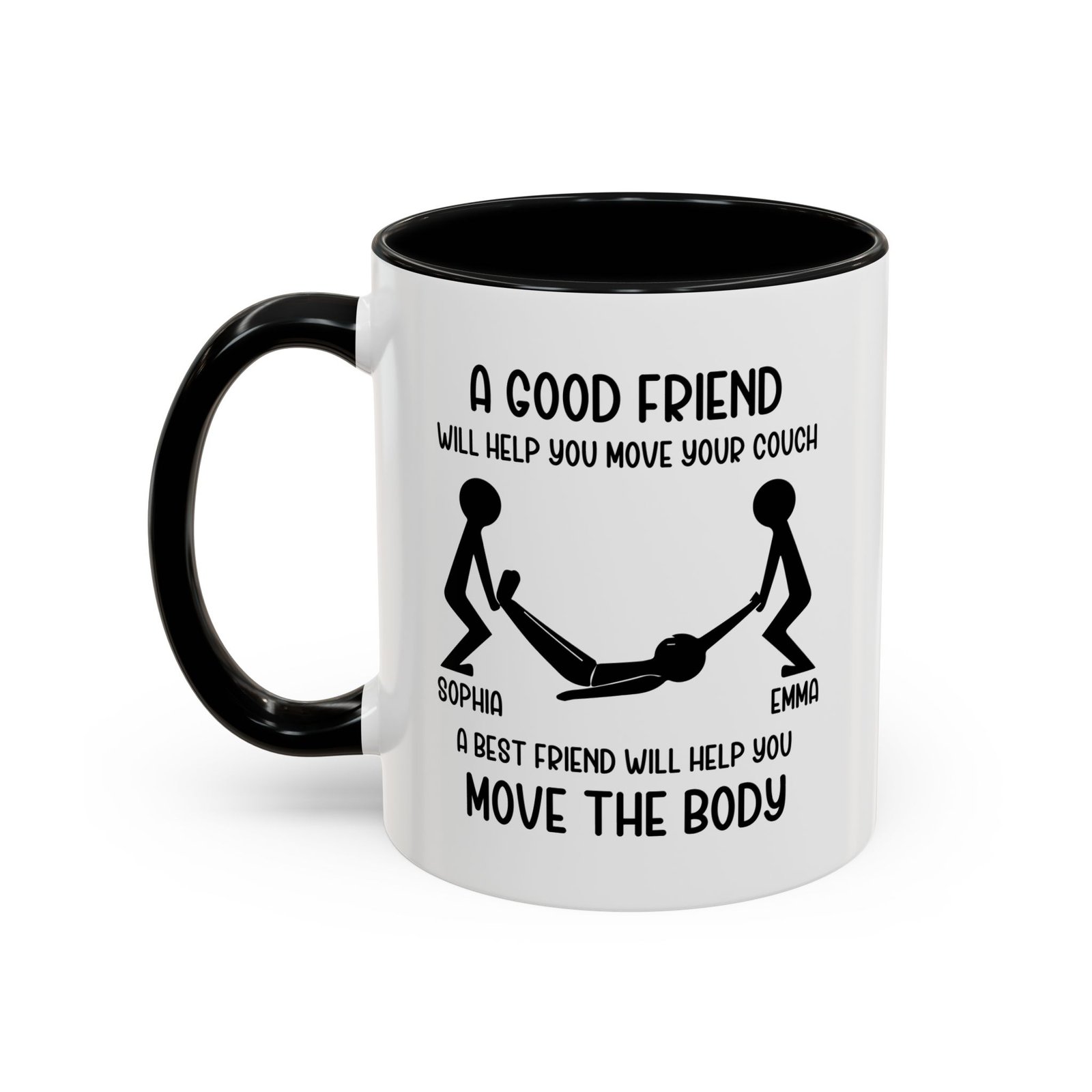Celebrate real friendship with humor. The “A Good Friend Will Help You Move Your Couch, A Best Friend Will Help You Move the Body” coffee mug delivers a bold joke that best friends instantly understand. This funny mug adds personality to morning coffee and sparks laughs at home or in the office. It makes a perfect gift for best friends, close buddies, coworkers, or anyone who appreciates dark humor and loyal friendships. The clean design and strong message turn this mug into a conversation starter and a memorable gift.