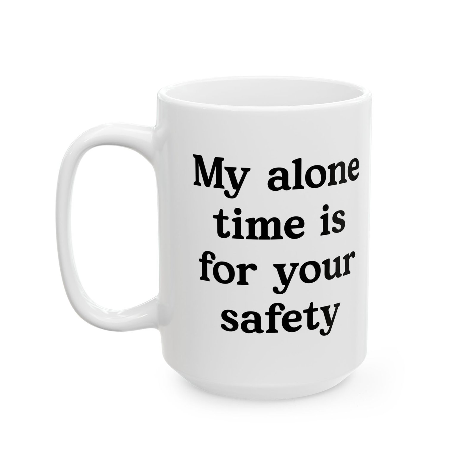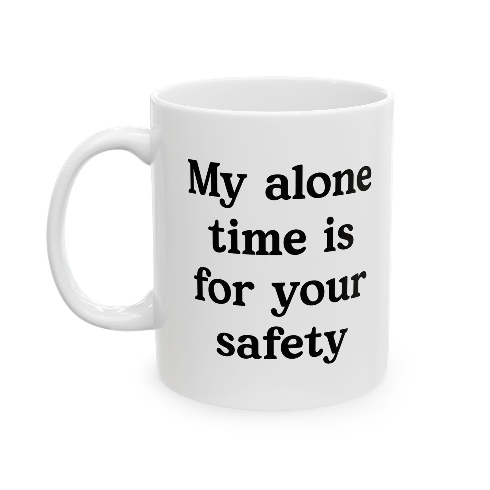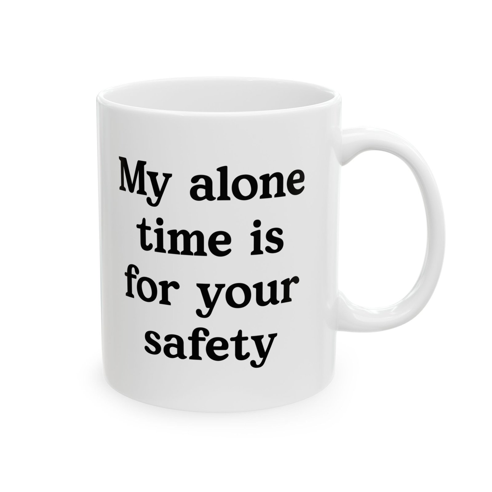 Make a statement without saying a word. The “My Alone Time Is For Your Safety” coffee mug adds humor to your daily routine while setting clear boundaries. This mug speaks to introverts, sarcasm lovers, and anyone who needs quiet time to recharge. Sip your coffee at home, in the office, or during your alone moments and let the message do the talking. The bold design grabs attention, sparks laughs, and turns every coffee break into a moment of personality. It also makes a great gift for friends, coworkers, or anyone who appreciates dry humor and honest vibes.