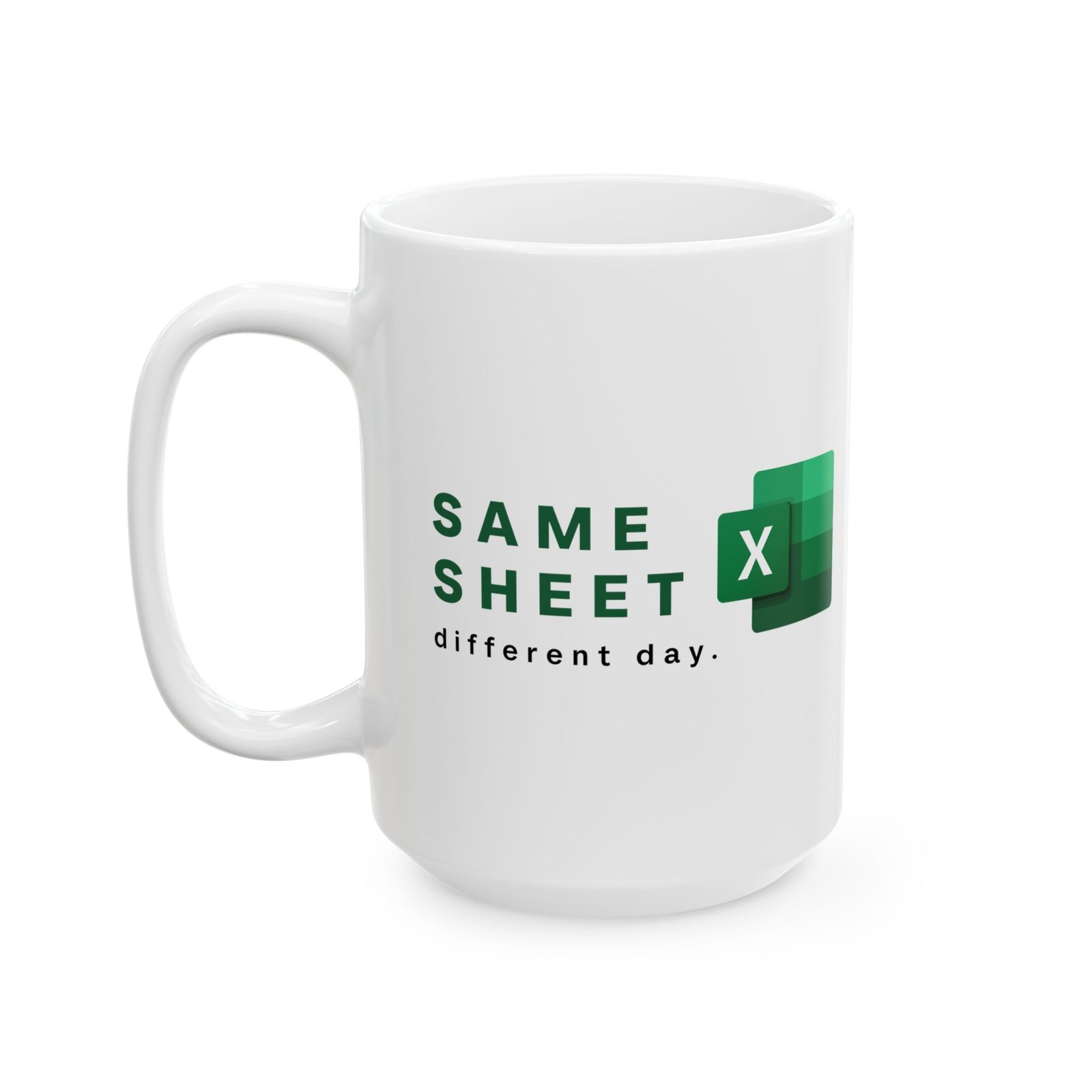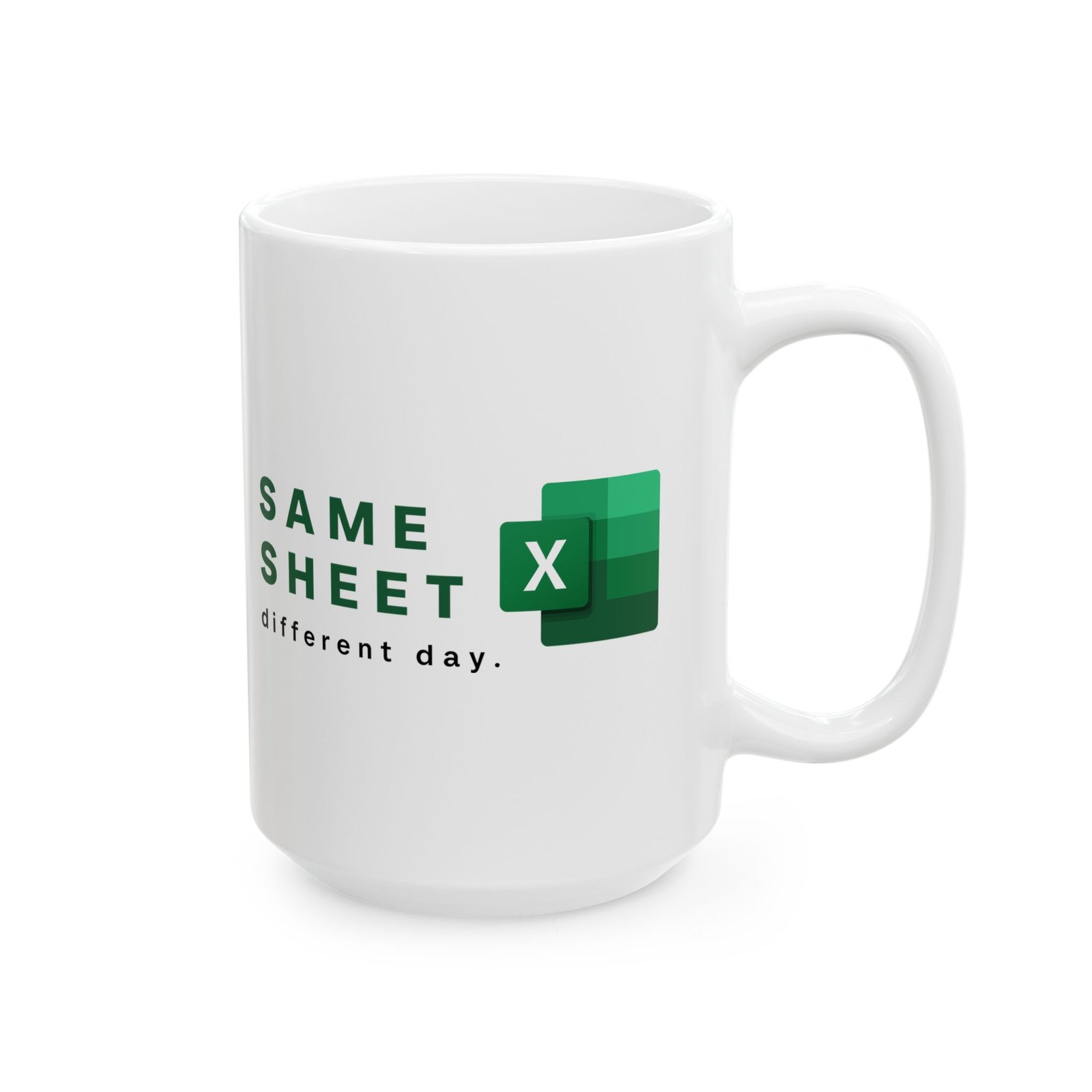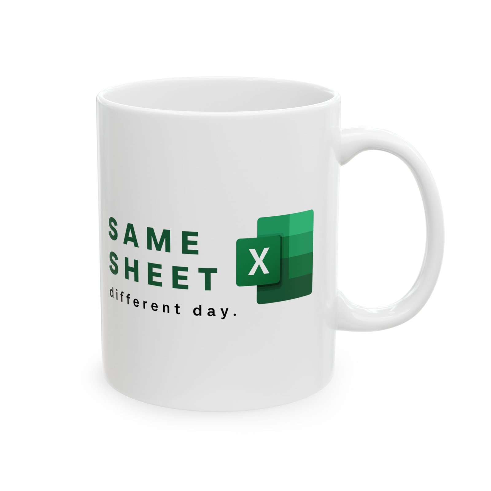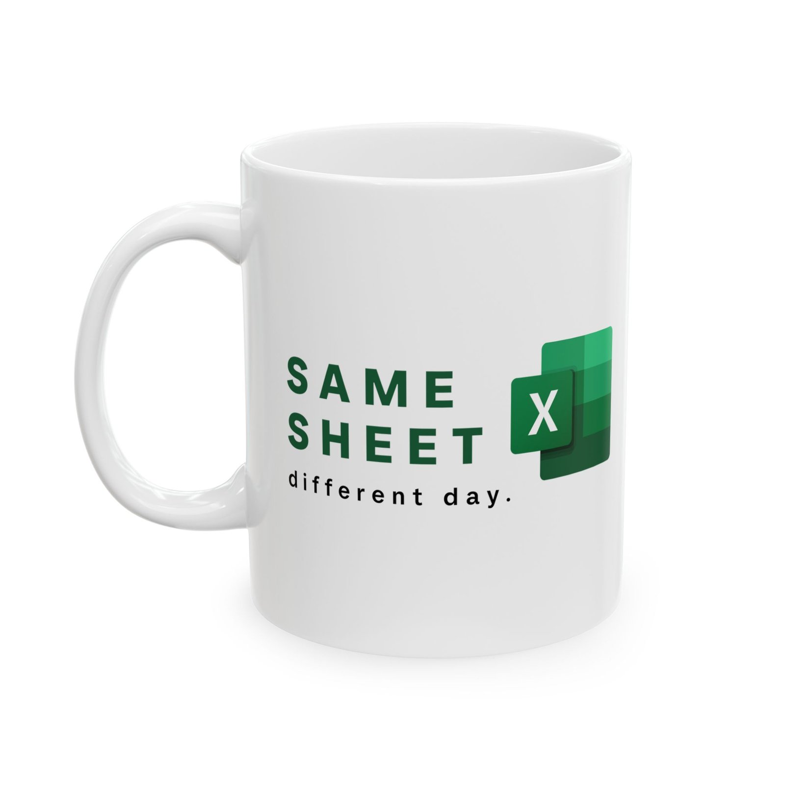 Same Sheet Different Day Mug – Funny Excel Coffee Mug for Office Humor
