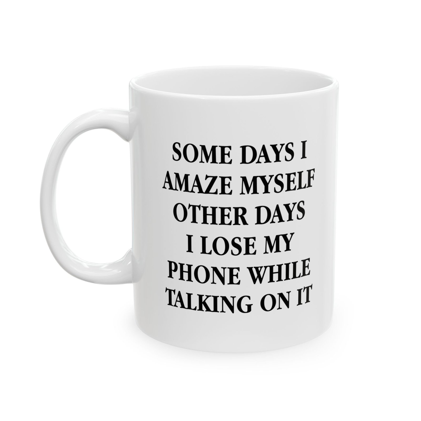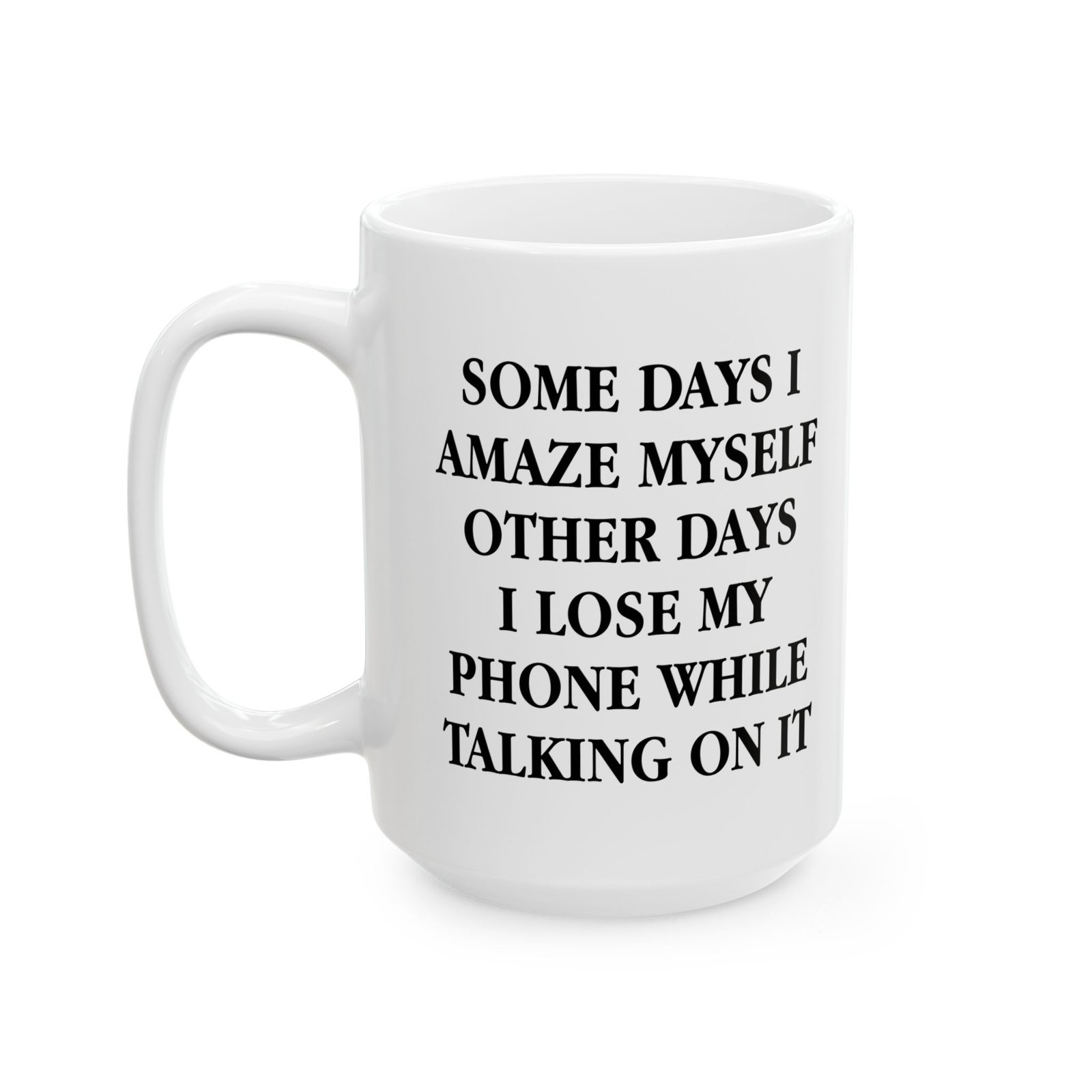 Brighten up your mornings with the “Some Days I Amaze Myself, Other Days I Lose My Phone While Talking On It” Mug – the perfect blend of humor and everyday relatability. Crafted from durable ceramic, this novelty coffee cup makes a hilarious gift for coworkers, friends, or anyone who appreciates sarcastic humor. Great for home, office, or as a conversation starter, this funny mug is both microwave and dishwasher safe, ensuring it’s as practical as it is entertaining. Ideal for birthdays, holidays, or just because, it’s the ultimate gift for anyone who needs coffee and a laugh to start the day.