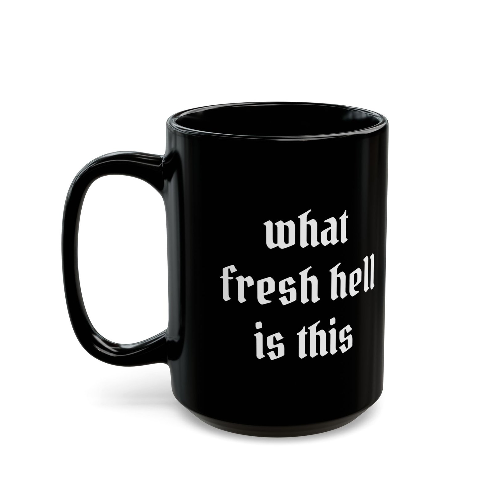 What Fresh Hell Is This Black Coffee Mug – Funny Sarcastic Quote Cup (11oz-15oz)